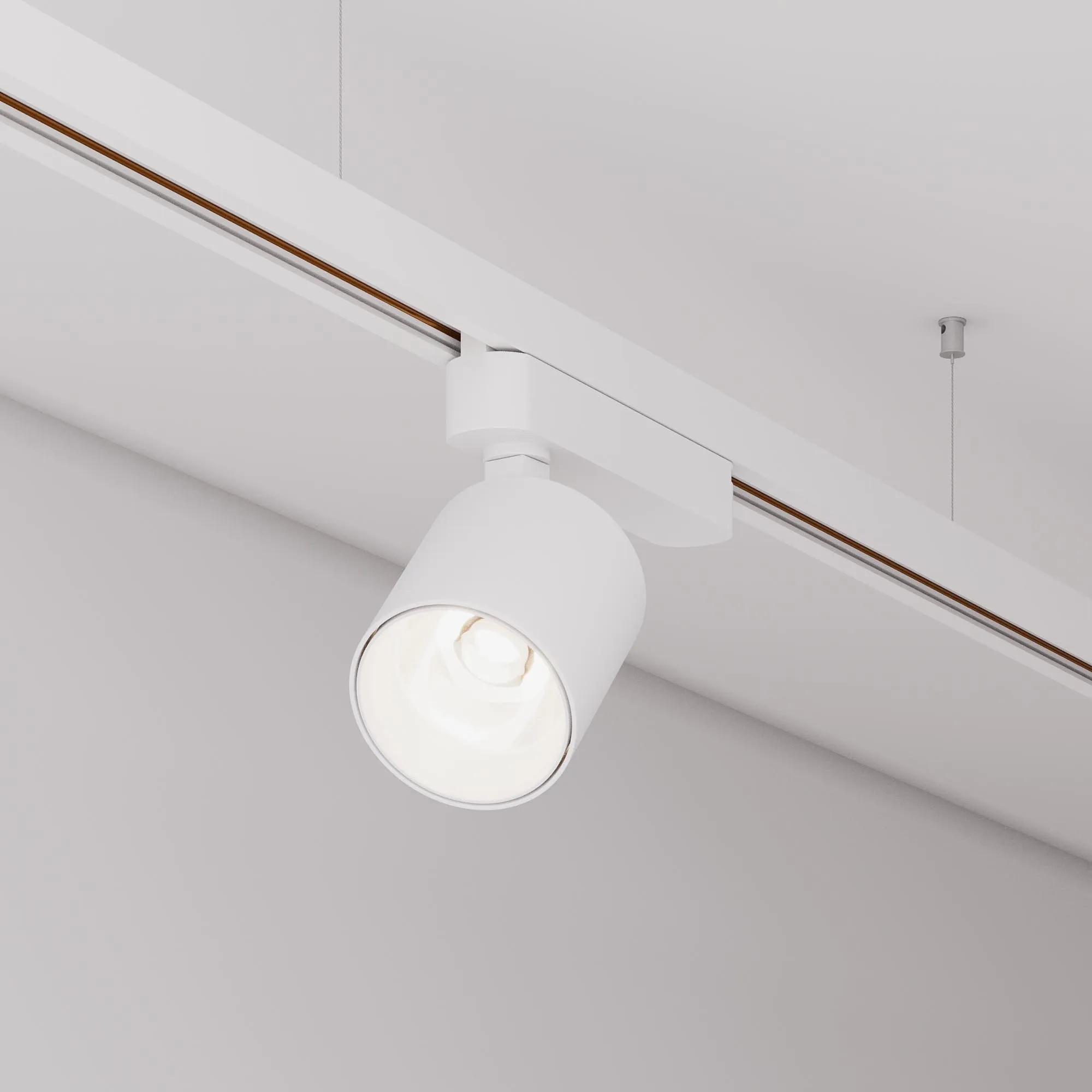 Светильник для однофазных треков, 16 Вт. Цвет свечения ТЁПЛЫЙ 3000K, световой поток 1750 лм, угол 20°, CRI>90. Корпус круглый, металл, цвет белый, IP20. Размеры Ø74x69,6 мм. Монтаж на трек 1-фазный. Входное напряжение AC220-240V, мощность 20 Вт. Драйвер встроенный (25-40V, 500 mA).Пульсация <1%.