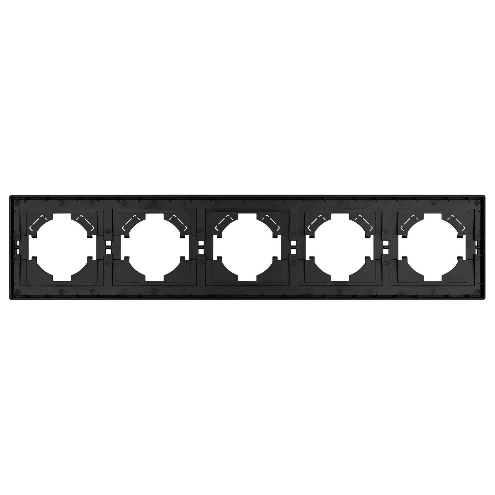 Рамка пластиковая на 5 постов, под встраиваемый механизм. Цвет - матовый черный, с Soft-Touch покрытием. Уровень герметичности IP20. Ориентация монтажа горизонтальная.
